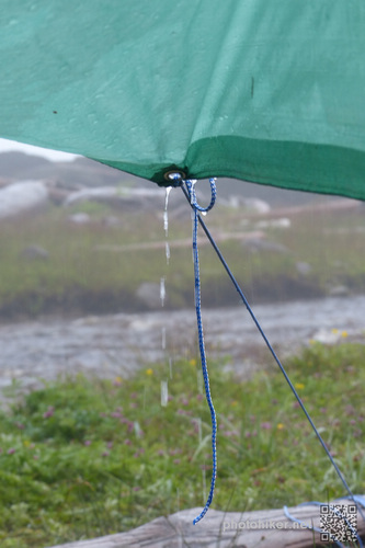 雨越下越大,我们4个人躲在那块防雨布下面开始“悠闲”的做饭,吃饭。看着隔壁的两个GG在雨中拔营的狼狈不堪,我们还算是运气不错的呢。原本想等雨停了,或者小一点时再出发,可是眼看都快9点了还不见希望,我们只得硬着头皮再次顶风冒雨的出发了。
