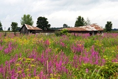 别过众驴友我们继续前行。高速路边不时有一片片的野花,尤其是那一束束粉紫色的马鞭花(Purple Loosestrife),在阴云天下色彩是愈发浓艳。午后终于进入Quebec,在两省交界处的Visitor Center稍事休息后继续赶路,刚开出不到5km我就发现左边远远的农田中有一抹隐隐约约的金黄,看那高度不像是野花,难道是向日葵?GuanGuan一听说有向日葵二话不说就下了高速,沿着一条小土路摸索着往回开,终于一棵棵茁壮挺拔的向日葵在一片片玉米地后面露出了灿烂的笑妍。