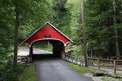 离开Flume,我们驱车沿Hwy89北上,再转Rd. 3向东,开始按图索骥寻访沿途的瀑布和廊桥。不得不承认,对廊桥的偏爱始于”廊桥遗梦”这部电影。十多年前也曾经为片中男女主人公刻骨铭心的爱情所感动。一个是在外浪迹天涯的摄影师,一个是居家相夫教子的农场主妇,他们因廊桥而相识,从而因四天的激情而思念终生,为道德与责任而有情人难成眷属。如今为人妻多年,每当重温这部经典老片,相对于男女主角浪漫的爱情和痛苦的抉择,每每让我凄然泪下的竟是Franciscka的丈夫Robert 在弥留之际的那段真情告白。作为一个丈夫,也许他不够浪漫,不够潇洒,但是他一定是个好丈夫,他对妻子的爱可以是那样深沉,那样包容,那样的令人为之动容。