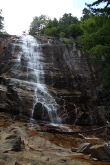 按照图示第一个经过的瀑布应该是Ammonoosue Falls,结果费了半天时间找到的瀑布居然平庸之极,真是白白浪费了大好时光。于是重新上路后我又把所有瀑布的介绍仔细读了一遍,舍弃了路途太远以及景色不出众的。接下来的两个瀑布没有让我们失望,Arethusa Falls和Ripley Falls都是又高又飘逸。坐在清亮潺潺的溪水边,午后的阳光透过树梢温和的洒在身上,看身边如细雨般的水流飘飘然的从悬崖顶端落下,水声淙淙,轻风徐徐。想想平日里为生计的奔波,此时有山水相伴,竟然萌生出”偷得浮生半日闲”之感叹。
