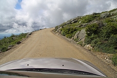 从山脚到山顶的这条盘山道被称为”Mt. Washington Auto Road”,全长12.2公里,海拔攀升1873米,平均坡度11.6%。我们还是第一次开车走这么长这么陡的山路,一开始我还真有点担心,不过后来看见前后有不少Yaris,Civic一类的小车,想来我们的车虽然不是四驱车,好歹也是个六缸呀。GuanGuan倒是一直信心满满,因为他终于有机会体验手动挡的乐趣了。山路开始的半程路况很好,我们在树林中盘旋而上,远处的崇山峻岭逐渐的显露峥嵘。在山下的时候天气晴好,而越往上走身边渐渐的开始云雾飘渺。随后树林被灌木所取代,到山顶就只剩下贴着地皮生长的苔原植物了。公路也不都是平整的柏油路,不时有一段段土路衔接,两车相遇的时候还是得多加小心。