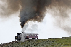 早上从做早饭时起就不停的有人过来问我们是不是今天离开,看来这里的营地还真是紧俏呢。GuanGuan和我暗自庆幸早早占据了这块宝地。不到9点我们就直接驱车前往Mt. Washington。过了Twin Mt.后我们就发现路边的许多Trail Head都早已停满了车,其间我们还在GPS的指引下超了条近路,没想到在那条僻静土路上居然也有大队人马在集合登山。到了山脚下买票后开车上山,30块钱换来一大纸袋的纪念品。有一张介绍Mt. Washington以及驾驶注意事项的CD,好几本资料手册,竟然还有一张登顶证书和一张硕大的贴纸,上书”This Car climbed Mt. Washington”,搞得好象开车登顶是一件多么了不起的成就似的。
