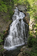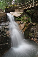 下山的路又是考验车技的时候了。GuanGuan打到一档,可是山路坡度实在是太陡了,不踩刹车根本控制不了车速,可又不能一路都踩着刹车不放,只好半路上停一停,晾一晾刹车片。下的山来已经是午后快两点了,GuanGuan和我继续着我们的瀑布之旅。沿Hwy16向南,先来到Pinkham Notch Visitor Center,这里的停车场同样是停得满满的,White Mountains地区真是个爬山的好地方,各种难度和长度的Trail在群山之中纵横交错,在这里再也不会象住在安省的我们每周都要为去哪里发愁了。沿着通向Tuckerman Ravine的山路我们找到了Crystal Cascade,丝般细腻的水流,优雅的姿态,拍出照片来非常好看。离这里不远的Glen Ellis Falls形态简洁而不失优美,又不需要走很长的路,也很值得一看。离开 Pinkham Notch之后沿Hwy302继续向南,在小镇Jackson看了看漂亮的Honeymoon Covered Bridge,到North Conway之前吸取了昨日堵车的教训,改走边上一条僻静小路,果然一路畅通的来到了Kancamagus Highway。