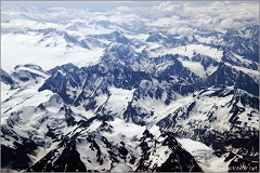 飞机再次起飞离开温哥华向北飞去。温哥华真是个美丽的城市,依山傍海,风景如画。一路向北,渐渐的城市被苍翠的群山所取代,最后则变成了无边无际的连绵雪山。一道道冰川由山巅蜿蜒着伸向海边,高山,冰川和大海,Alaska将它们完美的组合在一起,呈现出那独一无二的壮丽之美。一路上我拿着G9对着窗外拍个不停,GuanGuan对我的欣喜若狂一直都不屑一顾,说什么玻璃太脏,云层太厚,肯定照不出什么东西,也因此一直不舍得把他的宝贝50D拿出来。后来经不住我一再的鼓动,他也终于为窗外的奇景所吸引,还主动把50D借给我用。两个多小时就这样一晃而过,午后一点半我们降落在Alaska的第一大城市Anchorage。