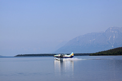 下午6点,GuanGuan和我静静的坐在Naknek Lake的湖边,不时有一架架小飞机在远处起飞降落,在湛蓝的湖面上划出一道道优美的弧线。近岸的水中有人在钓鱼,远处的岸边有熊在散步。雪峰高耸,青山叠翠,碧水悠然。我真的是深深的爱上了这片土地,离开这里竟是如此的心存眷恋。或许我应该考虑换个职业,离开那些枯燥的编程语言,去当一名普普通通的Park Ranger,每天或与青山为伴,或与大海为邻,那才是我真正想要的生活。不过今天,无论多么的不情愿,我们也必须乘7点的小飞机离开Brooks Lodge。当飞机飞离水面盘旋在Naknek Lake上空时,GuanGuan和我都默然无语, 只是神色黯然的望着窗外发呆。都说去Katmai是一生一定要去一次的地方,而当你去过一次之后,你才会明白那里是去多少次都不会厌倦的。