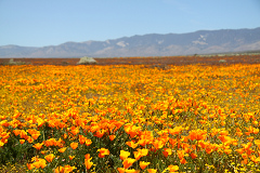 心灰意冷的离开Poppy Reserve,GuanGuan和我先溜达到Lancaster小镇上加油,顺便采购点零食水果。而后心有不甘的我们再次杀回了Antelope Valley,开始在保护区外围的土路上巡视。我们的策略是先在路边的小山坡上四处张望一下,看哪里有大面积的橘黄色就千方百计的找路开过去。虽然土路上坑洼不平,颠簸异常,还经常误入歧途,但是当我们终于漫步在一片片盛开的花丛中时,心中的那份狂喜真是难以言表。