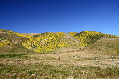 早上7点多就爬起来,去旁边的麦当劳吃完早饭后我们便沿Hwy46一路向东,路上真是越走越失望,越看越伤心。Hwy46,41和58沿途都是丘陵起伏,赶上年景好的时候,那山坡上应该是山花烂漫,色彩斑斓。而如今满山只有刚刚返绿而枯黄未消的野草。沿InterState 5南下,在Gorham附近下了高速转Hwy381,当我们终于顺着路牌来到Poppy Reserve的门口时,环顾四周,那一座座青黄相接的小山包真是让我欲哭无泪呀!想当初,那张曾经令我砰然心动的照片正是拍摄于此。遥想花期鼎盛之时,那漫山遍野的花海就象大地上铺满橘红色的地毯,色彩之艳,地域之广无不令人惊叹。而如今我们不远千里,满怀希望的终于来到这片梦想之地,没想到诺大的保护区中居然一朵花都没有,真是伤心欲绝呀!