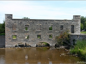 The mill destroyed by fire and was rebuilt in 1869. The existing structure once contained a stone flour mill and a lumber mill. A tramway was built across the river to the railway tracks. Destroyed by fire in 1978, the remaining structure has been incorporated into a park.