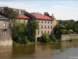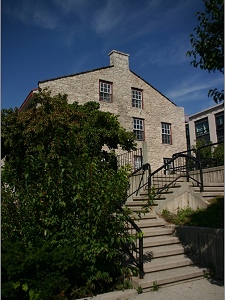 This multifunctional structure is a good example of adaptive reuse, conservation and restoration of a heritage building. From the west side of the river, one can see where the water from Mill Creek, that was used to power the mill, re-enters the Grand River.