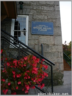 Its pioneer settlers deforested the land and planted crops for subsistence agriculture. For a century it was an unimposing gristmill hamlet and police village. The mill was repeatedly destroyed and rebuilt. The first three mills were destroyed by fire and the present stone flour mill was built in 1863. The building was constructed with limestone blocks taken from the actual site. Its walls are four feet thick at the base. The flour mill is one of the most substantial stone structures in the province. The Ciancone family bought this site in 1972 and built the “Old Mill Restaurant?in 1979.