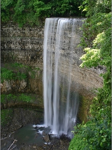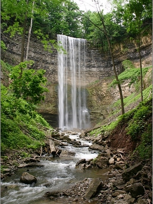 Logie's Creek tumbles 41 metres over the escarpment to form Tews Falls, just a few metres less in height than Niagara Falls. Though the flow of Logie's is substantially less that the main branch of Spencer Creek, the sheer height of the falls is what makes it such a stunning sight. There are two platforms just off the Bruce Trail that allow visitors to get a spectacular view of the falls and gorge below. Side trails in the area also offer access to Dundas Peak and the historical Crooks Hollow Conservation Area.