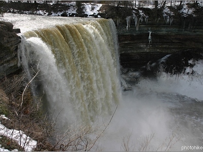 Located in the Ball's Falls Conservation Area, the site restored to its early 1800's atmosphere, features an operating flour mill, a church, blacksmith shop, carriage shed, and more. To get a really good view of the falls you need to get down in the gorge via the Bruce Trail.