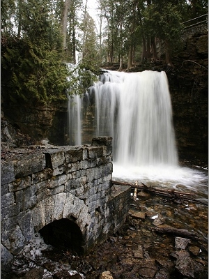 The blazing colours of fall are only surpassed by the beauty of fleeting spring wildflowers or the richness of the green summer landscape. The viewing station at the falls lets you drink in the intrinsic beauty of a 10 metre waterfall that cascades over the Niagara Escarpment and the mysterious mill ruins that surround it.