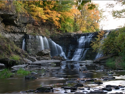The viewing area for the upper falls does not give you very good views of the falls. You can get down into the gorge at the base of the falls without too much trouble. At the far edge of the gorge a large volume of water has found its way under the caprock creating an almost separate waterfall. The caprock in this area is quite unstable.