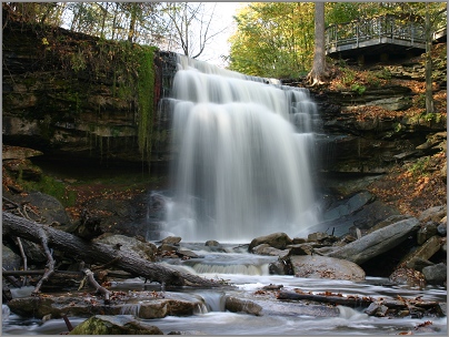 This area was once heavily industrial, as the Grindstone Creek was a power source for a sawmill at the base of Falls. A viewing platform has been built beside the waterfall. Follow the Bruce Trail down stream can easily get into the gorge and to the base of the falls.