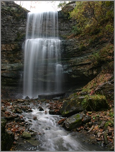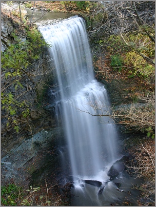 Felker's Falls is a beautiful two stage plunge waterfall steps away from an urban environment. This is one of the easier waterfalls to view, however, one of the harder waterfalls to explore. The trip to the base of the falls is very difficult, and not recommended. This escarpment area features trails, scenic vantage points, landscaping and the Peter Street Trail, a wheelchair accessible loop trail which travels through the conservation area.