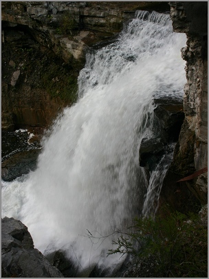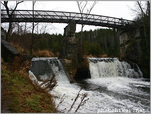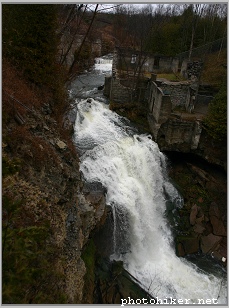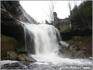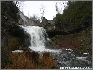 This waterfall is located in the Forks of the Credit Park, which is a well known park that gets a fair number of weekend visitors from Toronto. The park is a mix of forest, old fields and ponds. The trail to the waterfalls is relatively well signed, but the walk to the falls is about 40 minutes. A steel walkway and viewing platform provides a decent view of the waterfall from the side of the high walls of the Credit River gorge.