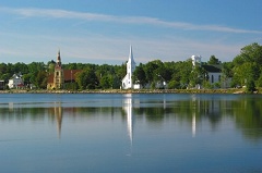 ,我们沿灯塔之路来到Mohone Bay。与 Lunenburg的明艳照人相比,这里的动人之处在于她色彩淡雅的建筑群以及淳朴的民风。最迷人的景致莫过于水边的三个教堂。隔岸望去,三个教堂形态优雅,色彩和谐,在碧水蓝天中是如此出世离尘的美丽。微风拂过,水面上清晰的倒影缓缓消失在泛起的丝丝涟漪之中。此情此景,竟会有一种“坐看云起”的悠然。真的很奇怪,为什么自己只能是这里的匆匆过客。Chester是我们停留的又一个小镇,同样宁静的港湾,精巧的民居,还有安详友好的居民。小镇的魅力是需要细细品味的。