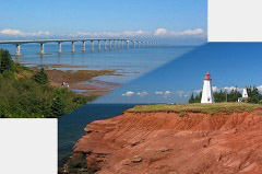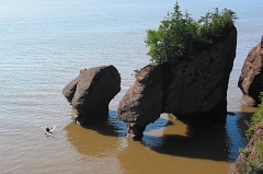 National Park享有Hiking 天堂的美誉, 看来只有下次再来体会了。迎着朝阳,我们再次向PEI进发了。首先回到Hopewell Rocks,欣赏一番涨潮时的景象。只见座座巨石早已被海水环绕,几只红色的Kayak穿行在众石之间,这本应是一幅绝好的佳作,但是美中不足的是那红褐色浑浊的海水。奇怪的是同样是红土覆盖的土地,PEI的海水却是那样的清澈明净。噢PEI,我真是无法抑制的为之倾倒。 终于我们又见到了宏伟的Confederation