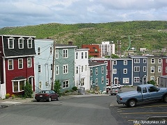 John's真正的魅力并不在于她在地理上的特殊位置,漫步街头,你会被那古老巍峨的教堂所吸引,你会为那曲折陡峭的街道而惊叹,而最令人赏心悦目的是街道两边古朴而色彩艳丽的民居。那一排排一列列式样简单的木屋,色彩各异,高低错落,搭配的或优雅或热烈,或清新或凝重。从任何角度看上去,无论或高或低,或远或近,镜头中的一切都是令人惊异的完美。这不是什么大师的精心设计,这大概就是人与自然的和谐吧。虽然天气不是很好,可我们还是在街上徘徊良久,拍了很多照片。