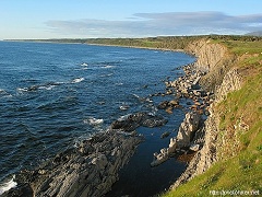 Point Trail,它的特点在于其海边悬崖上特有的岩石地貌。因为正是涨潮的时候,我们无法下到海滩上一睹其峥嵘的崖壁。这里的岩石地貌的确与众不同,大概是由于成分特殊,被风化侵蚀的岩石成鳞片状,站在崖顶望下去,下面一片犬牙交错的石壁,而且沟壑纵横,若是赶上阴雨的日子还真有些森然恐怖。而现在沐浴在金色夕阳中的一切显得那样舒缓安适。夕阳将我们的身影拉的好长好长,投映在身后金色的草地上,我们又将感受到那落日的辉煌。