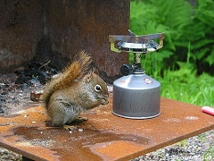 Hill Trail走了一圈,景色平平,无甚惊奇。回到营地我们开始做晚饭,今天的晚饭吃的颇为热闹,几只花栗鼠一直在我们营地周围探头探脑的,时刻准备过来抢点儿吃的。最后有一只居然把我们桌上的空盘空碗翻了一遍,又将灶边上洒出的一点儿面条汤舔的一干二净。看它吃的津津有味的那个贪婪样儿,真是好笑。 晚饭后我们准备去走走Green