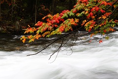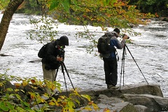订好9点半集合,结果刚9点10分qq就打来电话说他们已经到了。真有点上小学时每年秋游之前的兴奋劲儿。出发的时候还是多云,结果越往北走雨下得越大,于是大家不停的自我安慰,这预报中的4mm雨马上就下完了。中午在细雨菲菲中到了Oxtongue Rapid,几个人下车舒展了一下筋骨,随后一个个便如饿狼一般纷纷从车上翻出吃的东西,占据了河边唯一的餐桌凉亭开始大快朵颐,居然没有人提照相的事。吃喝完毕已经是一个小时之后了,此时大家才摆开拍照的架势,各自扛着器材去找地方”创作”了。