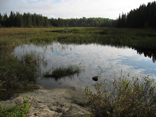 3 又是一个寒气袭人的夜晚,穿上两层保暖内衣蜷缩在睡袋中总算还能体会到温暖的感觉。早晨又恢复了细雨阵阵的天气,早饭后又是如同打仗一般整理行装。八点一刻准时出发。今天的行程全长12.5公里,其间要经过两个Lookout,和第一天一样艰辛。五月底的Algonquin已是春意盎然,虽然这两天气温骤降,春天的气息仍然是无处不在。走在密林深处,满眼是清新娇嫩的绿色,泥土和枝叶散发出的幽幽馨香仿佛把空气也染成了绿色。林间路旁,盛开的Paint