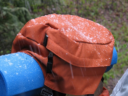 2 夜里又是风急雨骤,寒气逼人。早晨天蒙蒙亮时雨终于停了,只剩下那侵肌透骨的寒冷,连-12度的睡袋仿佛都难以抵挡。朦胧之间,我是那样想念家中那温暖的小屋和那张柔软的大床。早上点起篝火,吃完早饭身上才算有些暖意。雨仍然一阵一阵的,我们趁着阵雨的间歇以最快的速度拔营起寨,九点多钟终于打起背包,踏上今天10公里的路程。