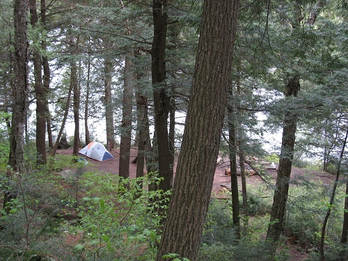 我们的营地位于湖边一块空地上,湖面已变成一条窄窄的水道,营地面积很大,但是几乎就挨着主路,而厕所坐落在旁边一座十几米高的小山上,路上又陡又滑,实在是够痛苦的。湖边风很大,天气越来越凉了,我们围在篝火边吃完晚饭,坐在岸边居然仍冻的发抖。七点多钟一切收拾完毕,看天色尚早,我们穿戴整齐来到湖边。傍晚的湖边清幽寂静,太阳适时的从云层中钻了出来,金色的夕阳照在身上终于有了一丝温暖的感觉。连山风也变得柔和了许多。波光粼粼的湖面上,不知何时游来一只Loon,它旁若无人的在湖面上游弋,时而悠闲的梳理羽毛,时而优雅的展翅欲飞。在Algonquin的丛林深处,这是一幅简单而又经典的画面,那种置身其中所感受到的宁静安详是难以言喻而又回味无穷的。 Day
