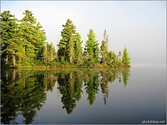 3 早上GuanGuan又兴冲冲的爬起来去看晨雾,结果湖面上只有一层薄薄的雾气,远山近水早已在阳光下变得清晰异常了。早饭后开始收拾打包,九点多我们踏上了归程。天气真是好得出奇,阳光明媚,晴朗无风。往常过了早晨就波浪起伏的湖面到了现在仍然是一平如镜,看着那幽静的山山水水心中还真是依依不舍。三个小时后我们终于回到了停车场,划船的人们也陆陆续续的回来了,GuanGuan和我坐在横跨小溪的一株大树干上,双腿泡在清凉的溪水中,晒着太阳,吃着零食,悠闲的看着码头上来来往往的游人,真是惬意无比呀。 午后我们离开Algonquin,没有急着回家,而是沿着hwy11继续北上来到小镇Sundridge附近的Lake