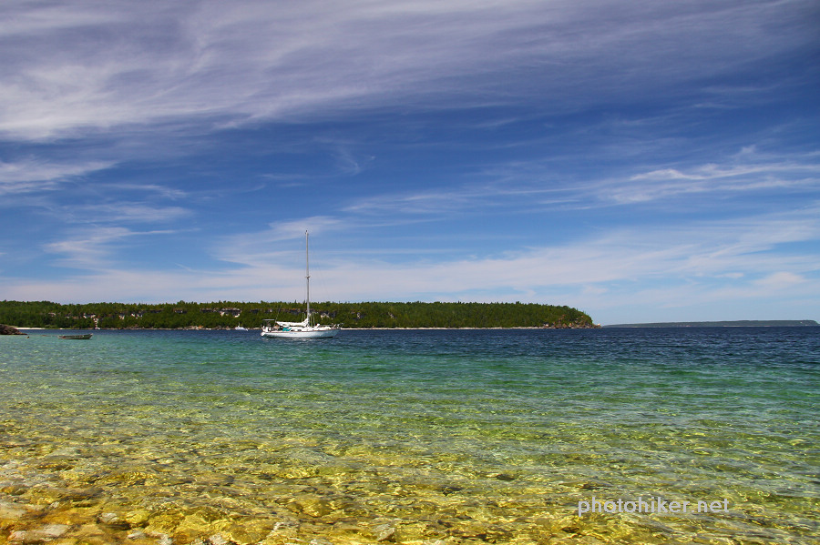 下午天气更加潮湿闷热,索性来到位于Black Creek Provincial Park的Sandy Beach。这里沙滩细腻,水质清澈,被称为"Best Kept Secrets of the Bruce Peninsula"之一。我们在这里消磨了大半个下午,野餐,戏水,还美美的沙滩上睡了一觉。4点多钟又跑到Hope Bay去小走了一圈。