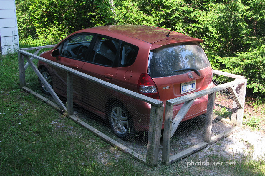 路过一家门口居然看见这辆可爱的Fit,不知道这样的保护意欲何为?