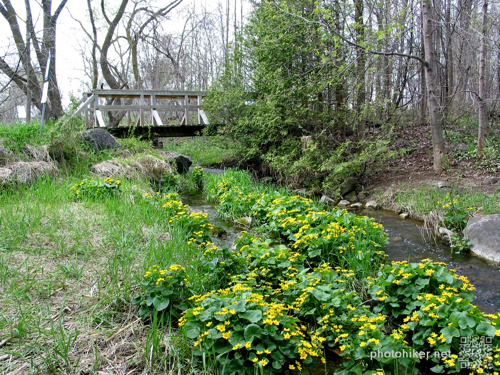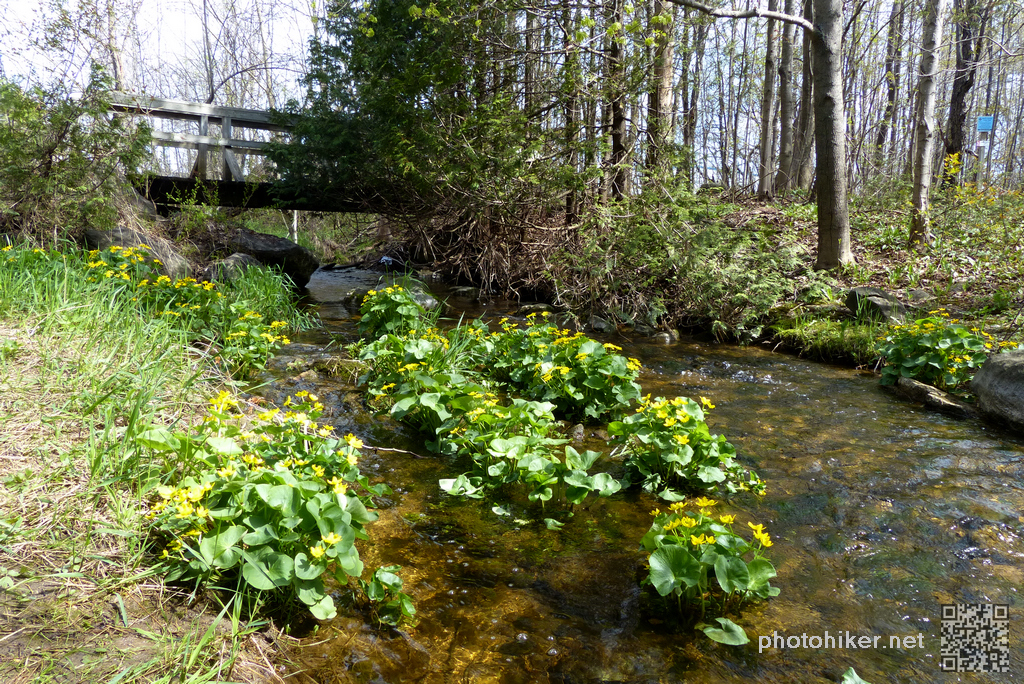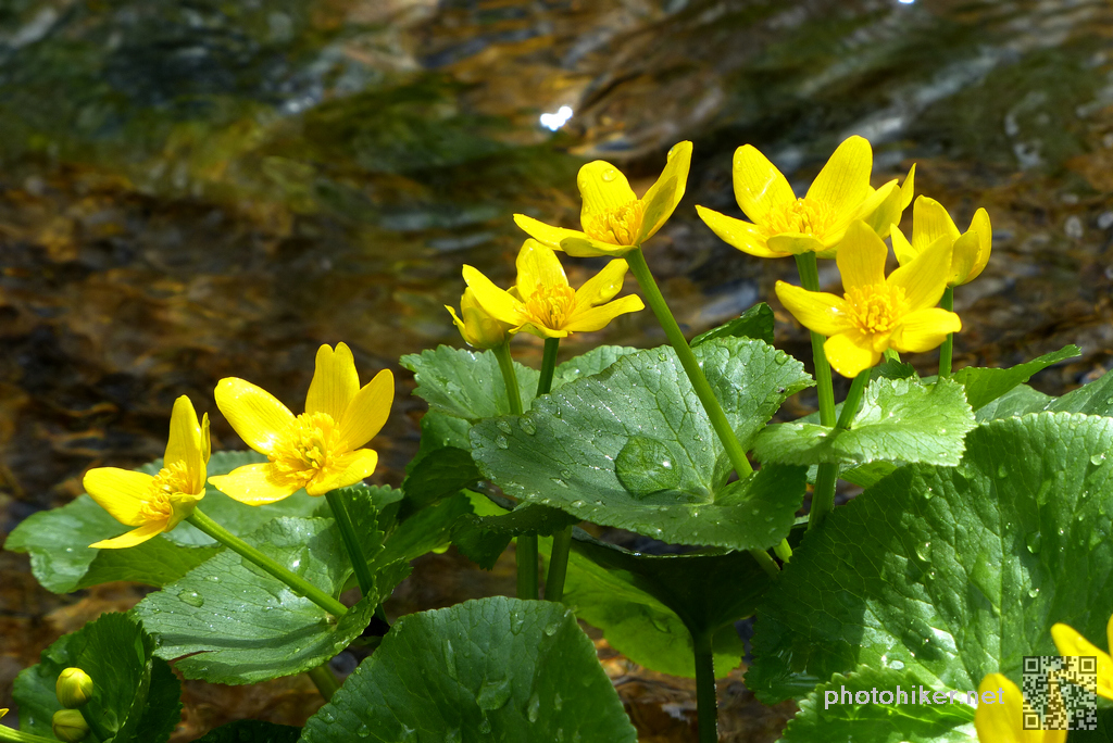 Trail入口处的小溪中团团簇簇的盛开着金黄色的Marsh Marigold,绿叶黄花,娇艳妩媚