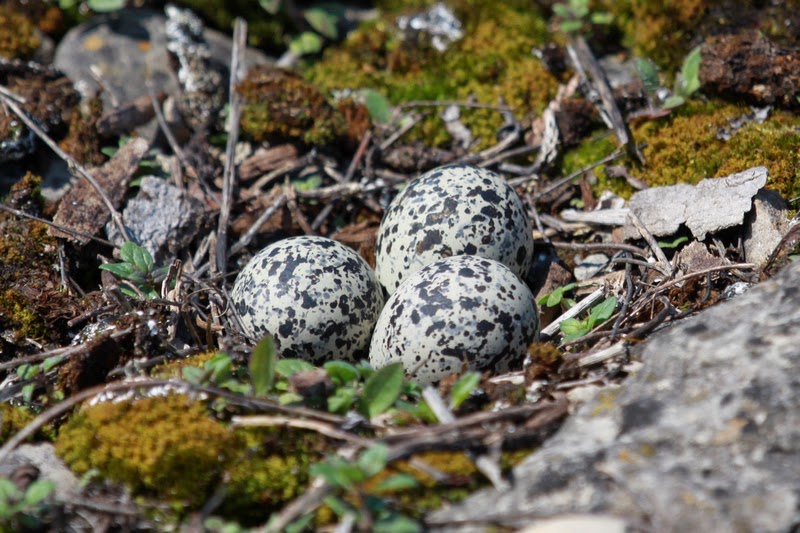 看着大鸟那么警觉我们就退到远远的地方去休息。不久鸟妈妈出去找食去了,我们赶紧凑到鸟窝边上。这保护色也太绝了, 我俩费了半天劲儿才找到这三颗鸟蛋。