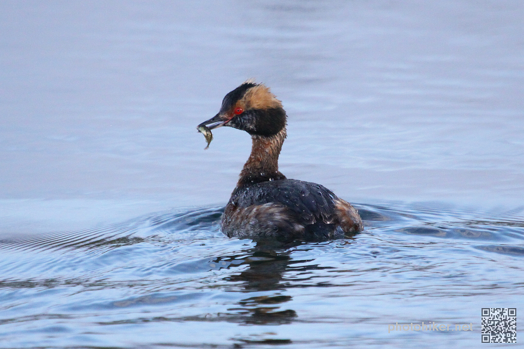 Hiking结束后去旅馆入住,而后便去Wiraton找了家餐馆吃晚饭。又是排骨又是炸鱼的好不丰盛。饭后遛达到湖边散步,无意中发现了一只Grebe