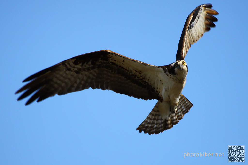 眼尖的Guanwei发现不远处有个鹰巢。没过多一会儿两只Osprey就飞了回来,不停的在巢穴上空盘旋,这可真是意外的惊喜呢。