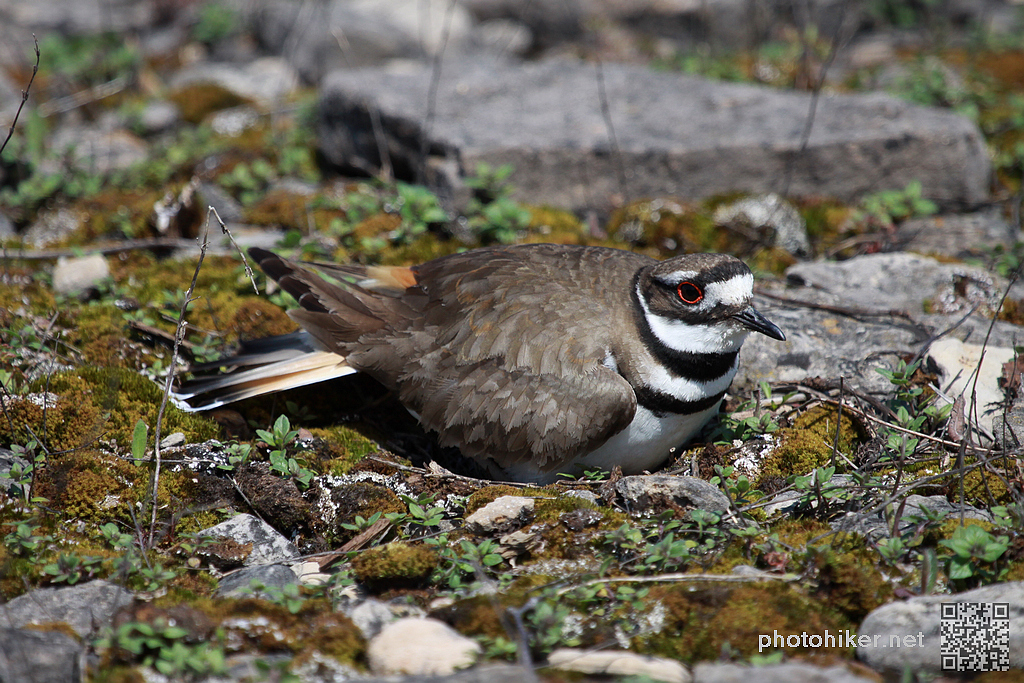 而今天最有意思的奇遇是在Rush Cove的湖滨。当我们正沿着湖滩上的碎石往湖边走时,忽然听见前方有非常尖锐的鸟鸣,拢眼神看了半天,我们惊奇的发现一只Killdeer正在乱石堆中孵蛋呢。
