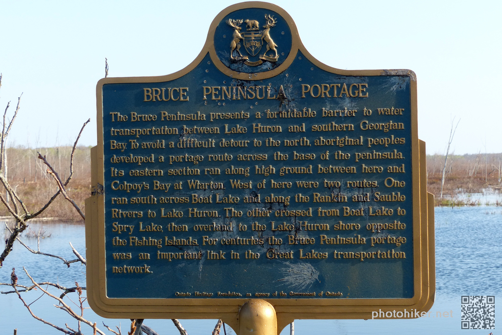 早上快8点才爬起来,吃过简单的早饭后我们打算先在附近逛逛,等天气转晴后再去Hiking。沿着County Rd.13向西,途经Boat Lake的时候偶然发现了路边的这处遗址,Bruce Peninsula Portage。这是当初原著民开发的运输捷径。