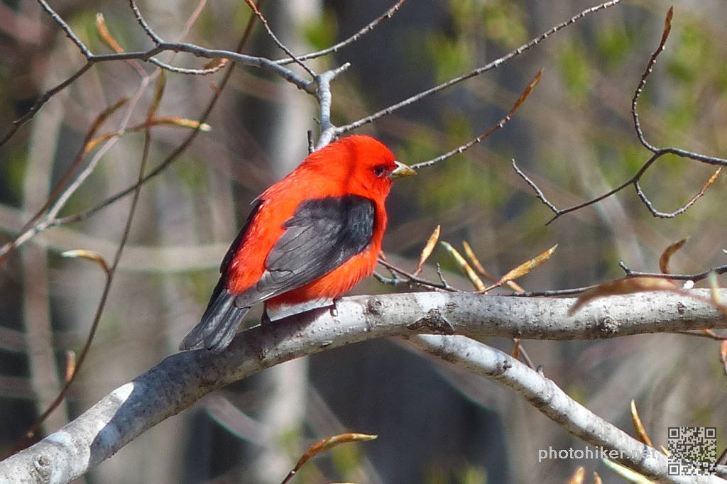 今天一路上碰到的鸟儿不多,这只红红的Scarlet Tanager算是最大的收获了