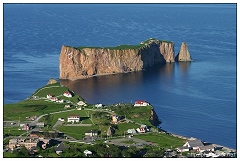 Island象一颗圆润的绿宝石,镶嵌在深邃的大海中。而此时的Perce Rock色彩柔美,体态悠长,不再巍峨,不再粗犷,倒象是一件精致的工艺品。从高处俯瞰,小镇的简洁,小岛的自然还有巨石的精巧,这一切在幽蓝的海水映衬下,在温暖的金辉夕照下营造出一份无比安闲祥和的气氛,赏心悦目,如诗如画。