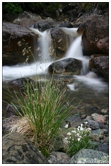 我们早上出门,一路上天气薄阴,原本还憧憬着到了山中会守得云开日出,谁知到了公园中却是阴云密布。等我们扎好了营寨就适时的飘起了小雨,GuanGuan和我无处可去,索性钻回帐篷小睡了一会儿。一个小时后听得外面雨声渐疏,我们来到营地对面的La chute Sainte-Anne,这是峡谷中的一道小瀑布,雨后水量丰沛,水声轰鸣。随后我们过小桥,沿着林间小路逆流而上,在不远处的Chute du Diable附近徜徉一番。激流和乱石再加上背后云雾笼罩的山峰,也不禁令人浮想联翩,颇有些云深不知处的感慨。 |