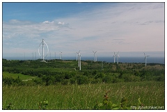 美景之二便是风车,一路上我们经过至少三处风车群,高高的伫立在山顶上,蔚为壮观。我们去参观了位于Cap Chat的Wind Energy Interpretation Center,在一堆常见的三叶风车中有一个形似枣核的家伙,这就是Eole,世界上最高的垂直轮轴风车。至于它的工作原理,特征还有优缺点等知识对于我这样物理没学好的人来说就太枯燥了。