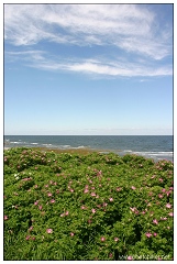 美景之三是海边盛开的大片大片的野玫瑰。绿叶簇拥下的粉红花瓣象极了天边飘来的轻云晓雾,随着海风轻飘荡漾,带着缕缕醉人的甜香。一路上每当看到那簇簇粉红我们都禁不住要停下车来,在那一片片无名的海滩上徘徊良久。尤其是Bic Park中的Bai du Ha! Ha!,这里简直就是一个天然的玫瑰园。置身于花丛中可以悠闲的遥望蓝天下的碧海青山。旅途中的每一天都是如此的令人难忘,无论是满怀期待还是充满惊喜。