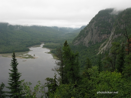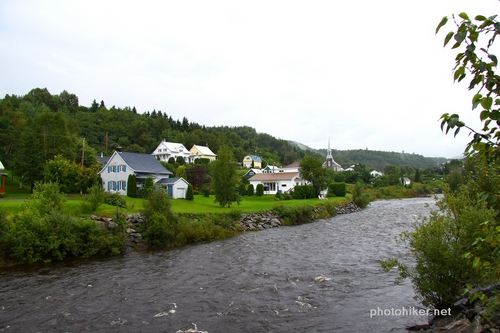 Jacques-Cartier Park是我们此行的第一站。这个公园离Quebec City非常近,因此周末游人众多。我们原计划走园中的Les Loups Trail,往返10km,爬到山顶去一览高山峡谷的壮观。无奈连日的大雨将我们的计划彻底打乱,最后不得不放弃了这条Trail。而在整个公园我们也不过停留了不到两个小时,从大门到Visitor Center的16km山路一直是在山谷中伴着Sautauriski River而行,河谷宽阔,河水清波缓流,是个爬山划船的好地方。