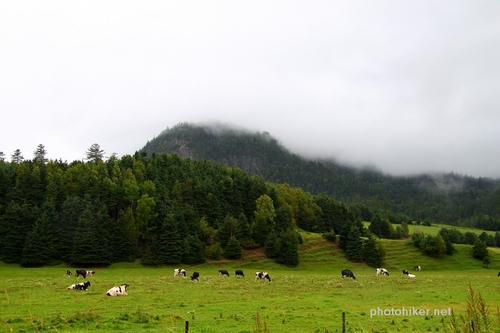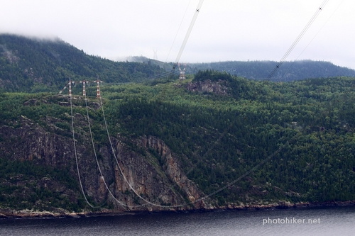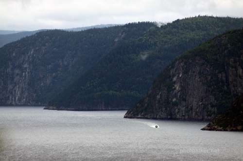 这是一个以峡湾风光为特色的公园,沿Saguenay River两岸绵延近百公里。整个公园分为三个区域,分别是Baie-Sainte-Marguerite Sector,位于峡湾的北岸,是beluga whales聚集的地方;Baie-de-Tadoussac Sector,也就是小城Tadoussac附近,是乘船出海观鲸的好地方;还有就是Baie-eternite Sector,位于河流的南岸,是观赏峡湾风光的最佳去处。原本安排在前面几个公园爬完山后用两天的时间从东到西尽情欣赏一下这高山峡湾的秀丽风光,谁知好好的计划被大雨搅乱。为了把好天气留给登山的重头戏,我们只好忍痛割爱,在阴雨连绵的两天里游览了这个风格独具的公园。
