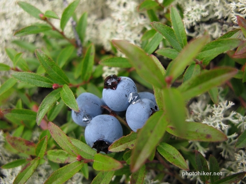 Grands-Jardins Park与Jacques-Cartier Park几乎是紧密相连,但是两个公园的大门之间开车要近3个小时。我们在这里露营了三晚,走了很多条Trail,其中的Mont-du-Lac-des-Cygnes Trail还爬了两遍。在雨中闲逛了两天之后我们终于守得风停雨住,虽然天空依然阴云灰暗,我们还是兴致勃勃的走了位于公园西部Discovery Center附近的La Pinede Trail。一路上除了常见的翠湖清幽,青松挺拔,最令我欣喜若狂的是遍地伸手可得的蓝莓。那一簇簇珠圆玉润的蓝色果实看着就那么好吃,吃起来更是甜香满口,让人欲罢不能啊!有好几次我都干脆坐在路边,随便伸伸手就摘得一大捧硕大的蓝莓,这么一路边走边吃真是开心极了。