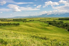 提起Alberta总会联想起壮观的落基山脉,其实Alberta是加拿大三个草原省之一。驱车来到城外,大片的农田牧场在夏日的骄阳下显得愈发宽广 无垠,一派与Ontario相似的田园风光。再走一段,渐渐的发现田野中除了在东部常见的草卷儿,奶牛和风车外,又多了一项Alberta特有的景致,油井。这蕴藏丰富的黑色黄金是这里财富的源泉。两小时之后我们转道Highway
