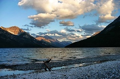 Hotel参观一番,这座宝塔状的木制建筑坐落在Upper与Middle Waterton Lake相接处的高地上,依山傍水,Upper Waterton Lake的湖光山色如同一幅美仑美奂的山水画呈现在眼前。天色渐晚,我们沿着Townsite