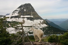 Butte到Chalet还有近4英里的山路,我们又往前走了一段看天色不早便返回了。回来的路上又遇到一对山羊母子,在这宽不足一米的山道上它们享有绝对的优先权。先是我们前面的三个人被羊妈妈赶上了山,随后我们俩趁它们吃饭的功夫才夺路而逃,然后就是我们后面的几个人被逼得走投无路,最后只好溜边面壁才得以脱险。回到Logan
